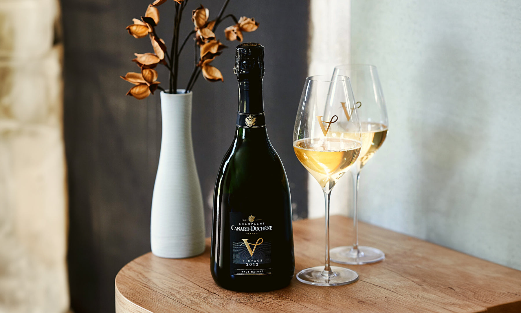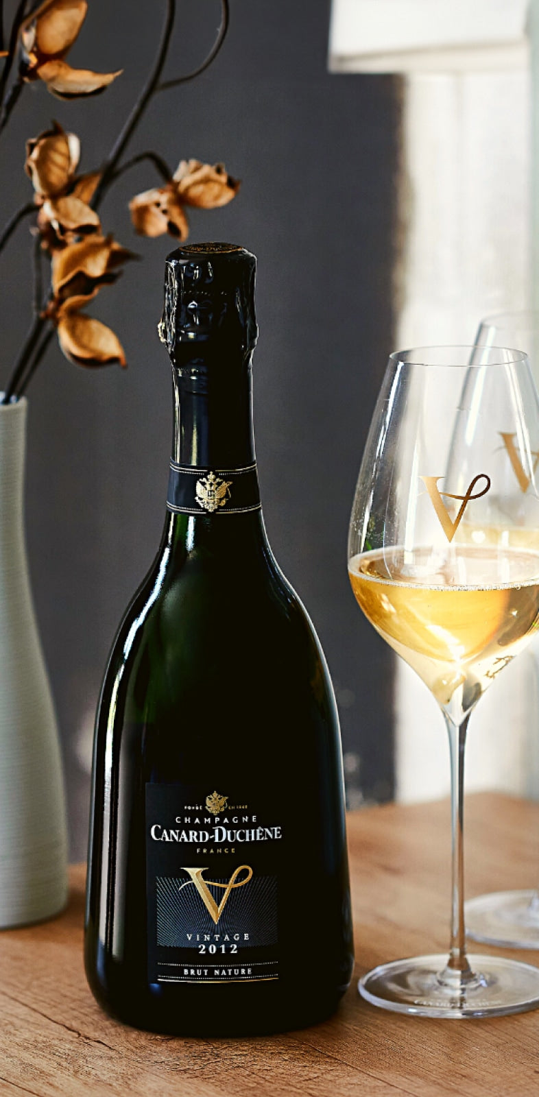 Nommé en l'honneur de Victor Canard, le Champagne V incarne le savoir-faire de la Maison Canard-Duchêne, mettant en lumière le Pinot Noir et les crus emblématiques de la Montagne de Reims.
